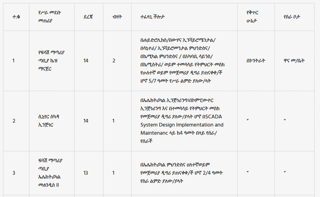 Addis Ababa Water and Sewerage Authority invites competent and interested candidates for the following positions.