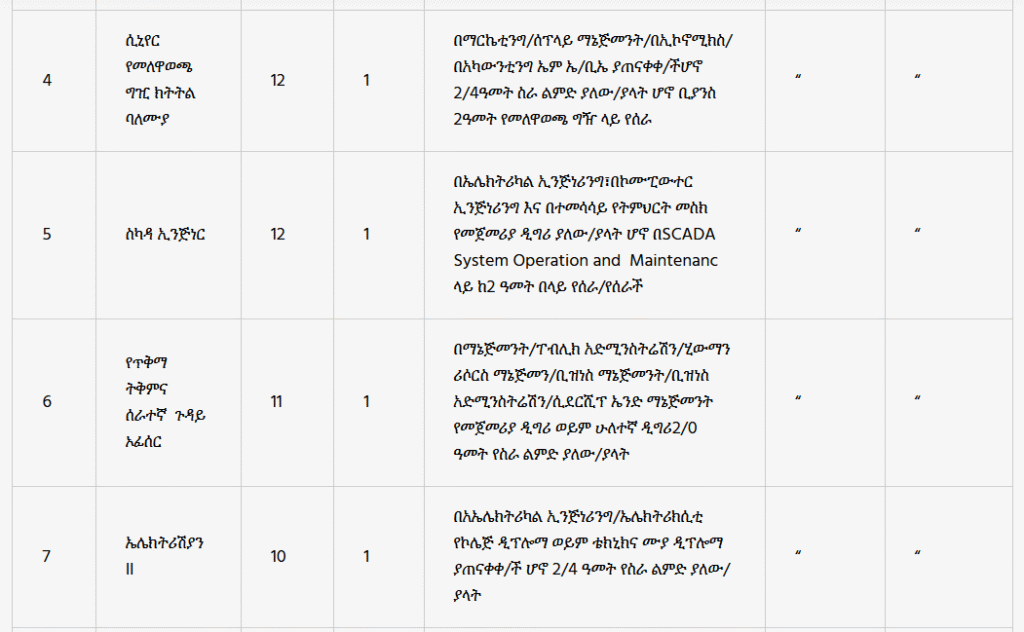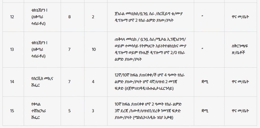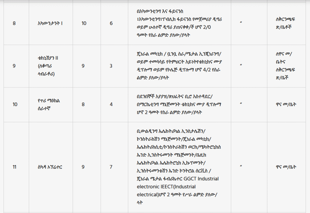 - Qualification: Completed Grade 10 education with 2 years of driving experience and a 3rd Level/Auto/Public 1/Dry 1 Driving License (for Mexico, Addis Ketema, Akaki branches).