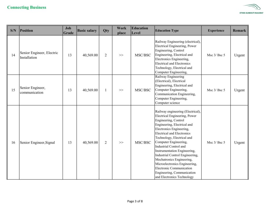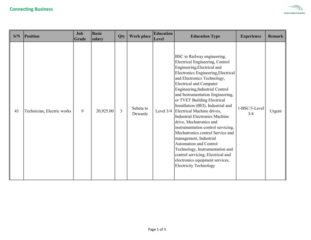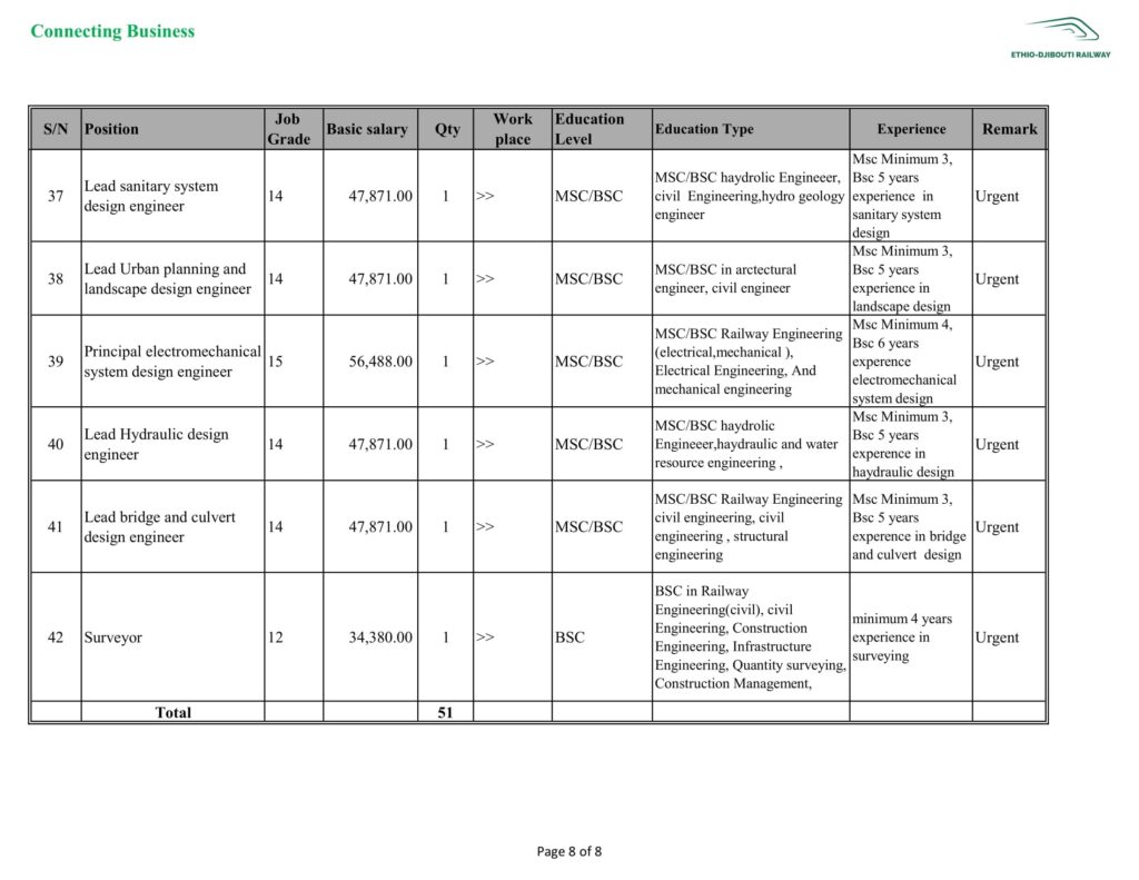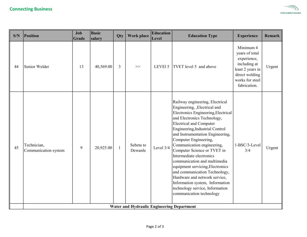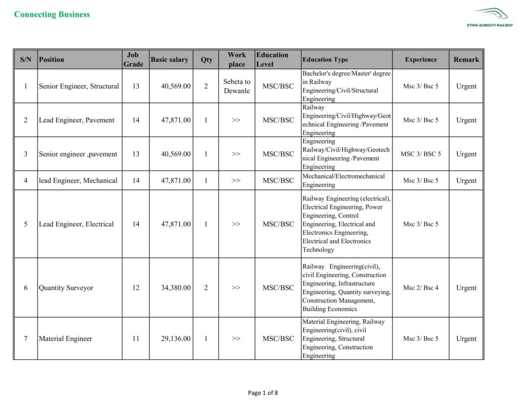 Ethio-Djibouti Railway Share Company is a leading entity in the transportation sector, connecting Ethiopia and Djibouti through an efficient railway network. Committed to excellence and innovation, we are now hiring on the following listed 49 Positions for its engineering office.