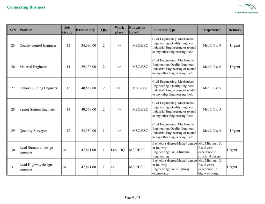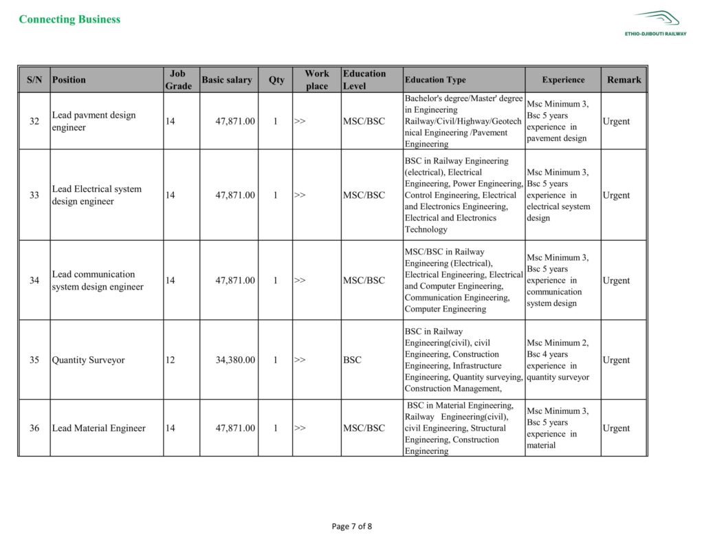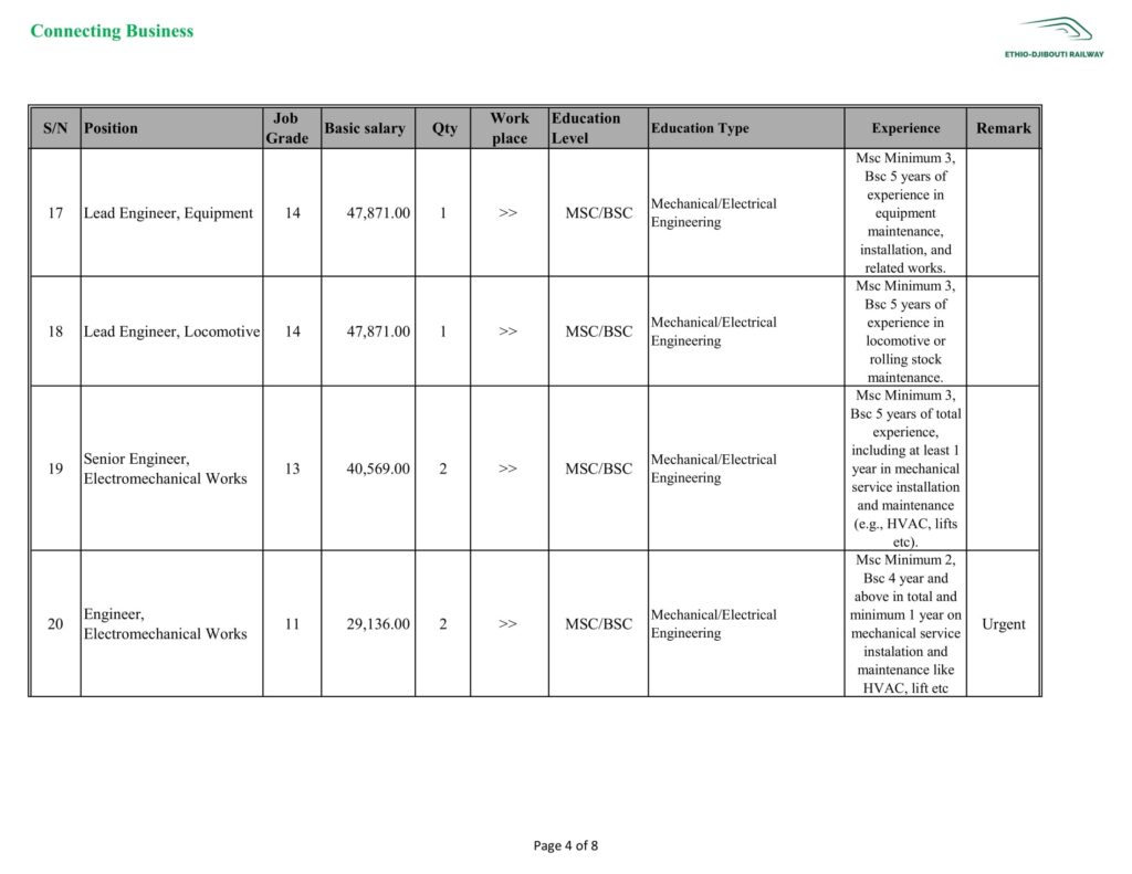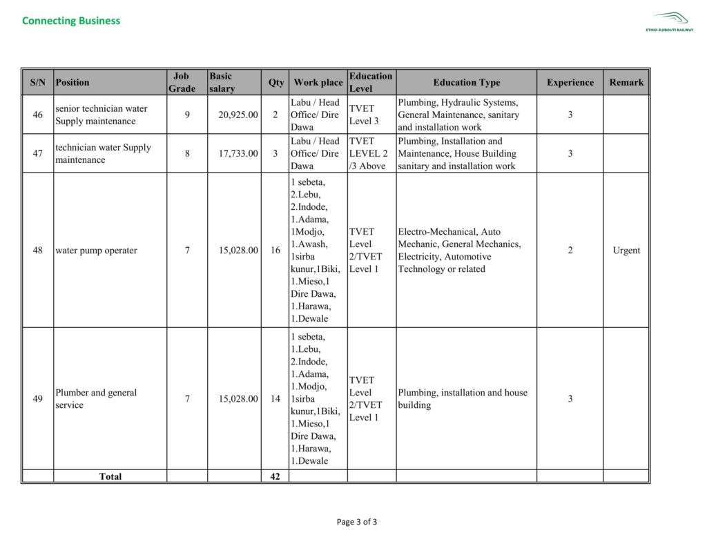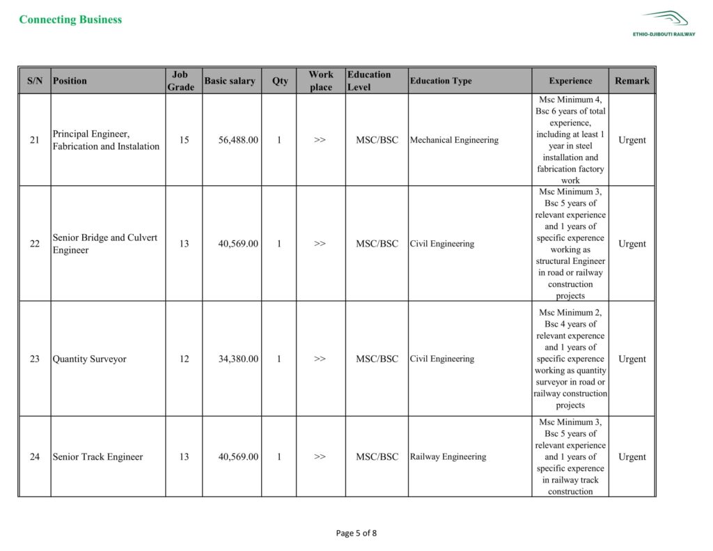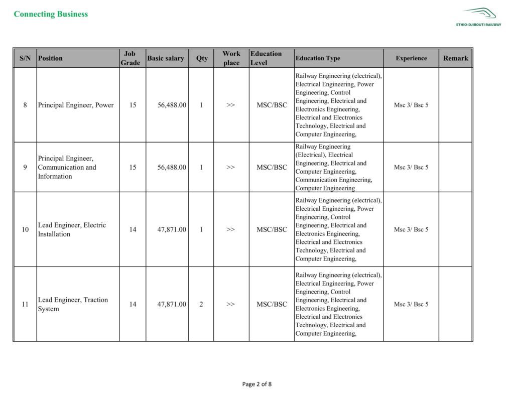 Ethio-Djibouti Railway Share Company is a leading entity in the transportation sector, connecting Ethiopia and Djibouti through an efficient railway network. Committed to excellence and innovation, we are now hiring on the following listed 49 Positions for its engineering office.